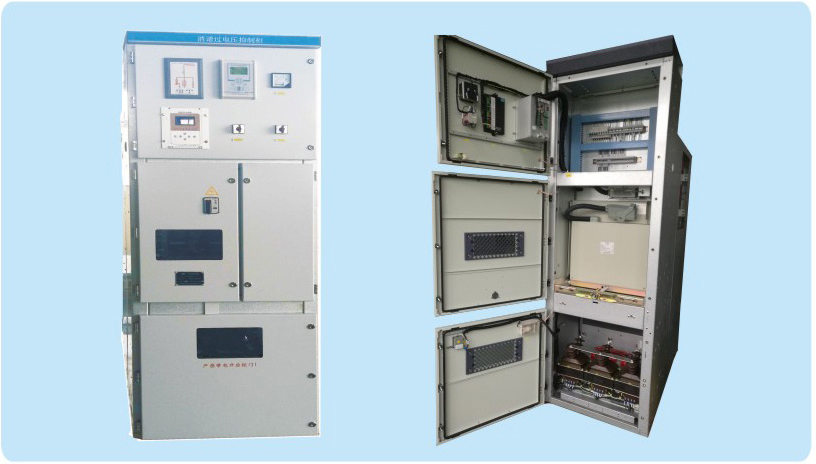 針對如此復雜的系統,難以孤立的使用某種或某幾種過電壓保護裝來抑制各種類型的系統過電壓,且這些不同廠家生產的過電壓保護產品,因保護特性不能相互匹配,而無法徹底有效的抑制系統過電壓。針對目前中壓系統過電壓防治的現狀,我公司研制生產了系統過電壓抑制柜/聚優柜,簡稱抑制柜/聚優柜,型號AYTYG-Y/J,該柜可消除系統中過電壓保護元件及裝罝的保護死區,優化系統過電壓的保護特性。